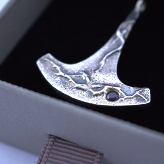 Hopeinen Ukonvasarariipus safiirilla